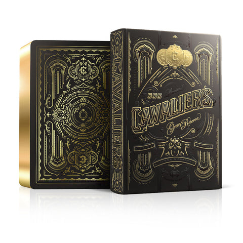 The ultra-luxurious edition of the Cavaliers Collection, gilded gold edges and fully foiled front and back on a silky deep black ink. Glistening gold, red and smokey grey foils adorn every face while black and shimmering gold ornately dominate the backs. Rare playing cards inspired by the iconic artistry, craftsmanship and rich spirit of Cuba’s most luxurious cigars.