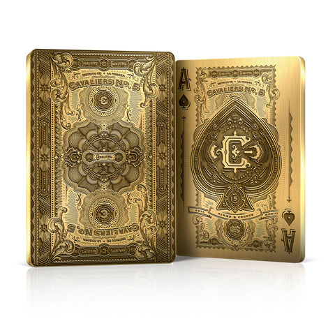 Insanely detailed with an antique gold patina, this heavy weight metal poker card is designed from the Cavaliers Export LIBRE decks Ace of Spades itself, and is utterly mesmerising.